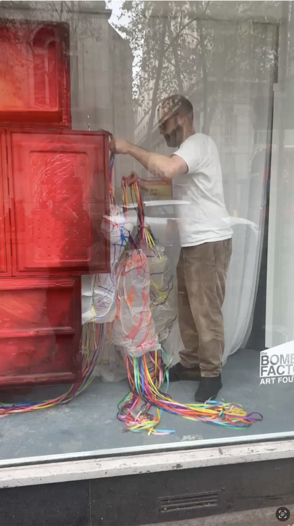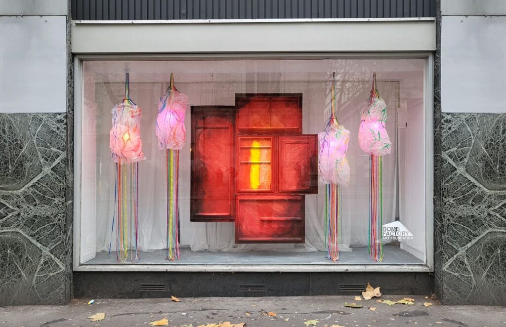 So there was this element of surprise when, after a few emails exchange and having to deal with cancelling the transport as I preferred to transfer the artworks myself I suddenly found out nobody will be there to help me install. Luckily I had my husband and his cousin and her husband with me, otherwise this whole thing would have been an absolute disaster. There was absolutely no way that me and my husband could have done this by ourselves and on top of that there was the fact that he had to go to the airport after and I had to go pick up our kids from school. So I was just a bit mesmerised by the lack of support I guess. Luckily, we managed, what really helped was the fact we put the magnets on the fridges ahead of time so we were able to join most of them for the hanging not only with magnets but also with angle brackets. In the end the drilling in the ceiling and fridges was the longest and I am very happy the magnets worked as well as the paper lamps(which took about 2days each to make) were hanging so beautifully and looking radiant with the colour light bulbs inside of them, like the beating hearts of the mum and the baby. So I guess my lesson here would be to never trust when someone from a gallery says there will be someone there to help but to prepare for the fact that I will need to do everything by myself or with my own team. Either way just really excited right now and can’t wait for the opening.