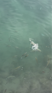 I’m telling this story to my husband: Last evening in Spain. After 2 weeks of half term feeling tired from struggling with family and keeping kids away from screens. We’re in an ice cream place and adults want to sit and talk, while kids are getting bored. My son walks to the port to look at the boats by himself, my daughter wants to join him, with me of course. Frustrated that I’m being pulled away from a conversation yet again I shove my needs into my pockets and follow her to look at the fish. We start feeding the fish with bits of leftover ice cream cone(I know, totally illegal) and the fish go absolutely bonkers mad jumping around to grab the bits, there are loads of them, 4-5 different kinds in giant shoals, the silver ones swimming up to the surface to grab the pieces and runaway as soon as possible before the big ones even notice. The kids are super excited, it gets to me, I forget about my needs, forget that I’m frustrated and just stay in the moment, with them, enjoying myself, feeling like that’s really the point of it all. Why does it seem so hard for me to get to this? Thank you fish!