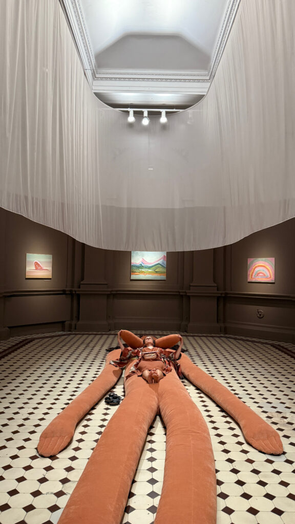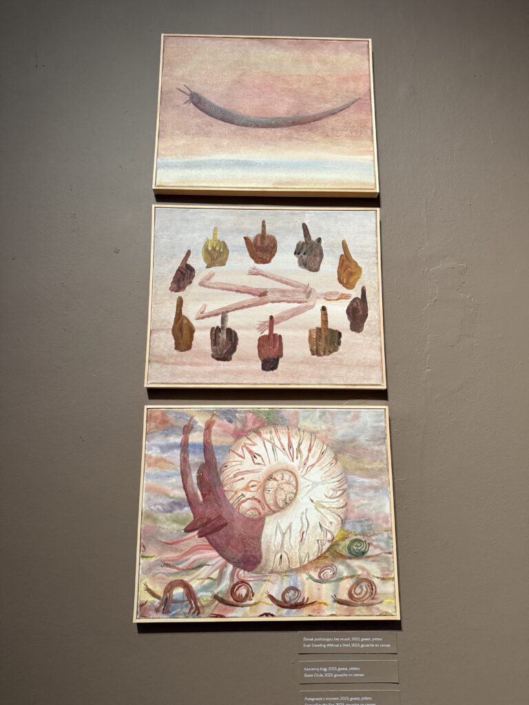 An absolutely stunning and deeply moving exhibition for me, by a single mother of neurodiverse children, for whom “painting has become a form of therapy and an act of resistance against patterns imposed by society, institutions and formal artistic education. Joanna Fluder’s work features a selection of gouaches on paper and canvas, alongside new, premiere installations. Her unique artistic language, which merges surrealism, humour, a rich imagination, and personal mythology, enables the artist to explore interhuman and interspecies relationships, parenthood, sisterhood, and caregiving.”