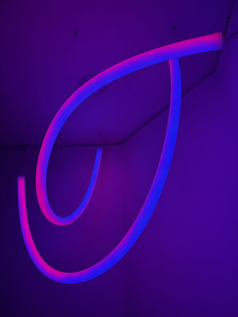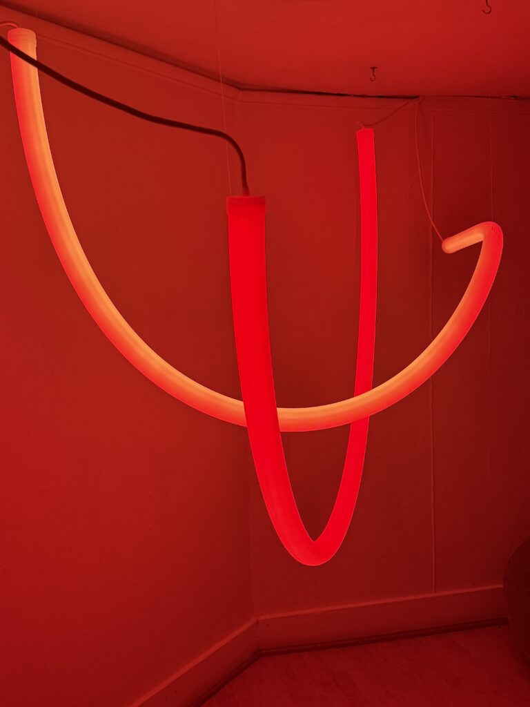 I saw Frankie Boyle’s work initially at Saatchi at The 4o Years Long exhibition. I really enjoyed her light installation, white tubes filled with multiple colours that changed slowly with the meditative calming sound which was accompanying it. Frankie’s lights changing collour really reminded me of my own paper lamps and their