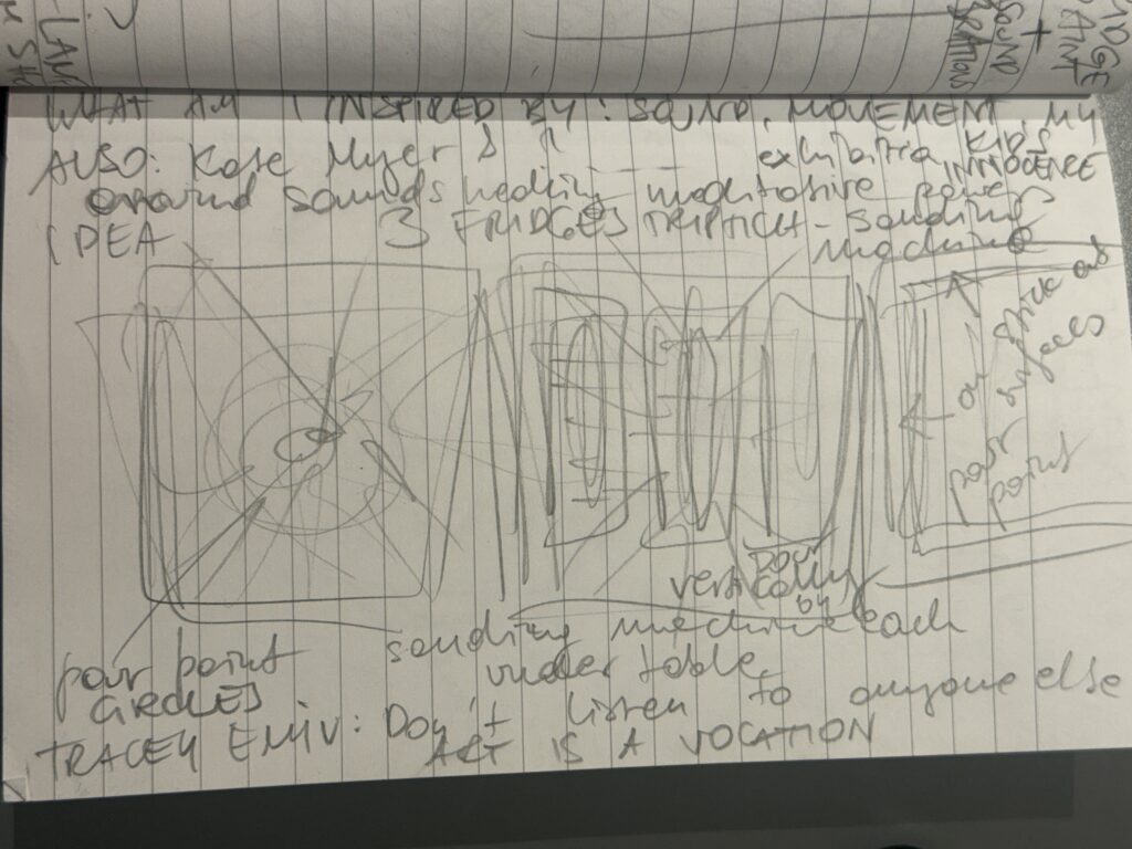 IDEA: Both artists have used sound as inspiration and I thought it really resonated how I react to sound/music/vibrations when I think about my work. And I didn’t think anything of it until, just this morning, I had an “enlightenment” moment in the shower and had to get out and run up the stairs and write down an idea before forgetting it. I don’t even know if this idea makes any sense but I just have to try it, I have to experiment with pouring liquid acrylic paint and using vibrations to spread it on canvas. Like Tracey Emin said, who cares if it doesn’t seem to make any sense and people tell me not to do it? I just feel like I have to do it.