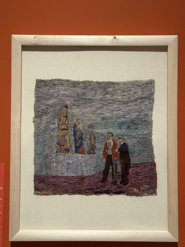 - I want to focus on the role of my grandmother in my life, and the collective generational struggle of women artists-mothers, who were forced to support their families as single mothers: the Journey from single mother struggling with naurosis and depression, without access to Mental Health support, using art as An outlet/method to manage her condition yet remaining invisible as An artist for Everyone except immediate family. I want to deeply analyse the last big piece of work she created, which was a 2 x 2m quilt she made as a wedding gift for me, based on Durer’s Adam and Eve oil on wood panel from 1507. I believe art was her way to cope with the difficulties of her everyday, caused by an early heartbreak, inability to study at a university(her mother was a private business owner in 1950s Poland and their childres couldn’t study, or maybe female children), early pregnancy with a gambler, who left when my mum was 3, leaving her to single parent, take barbiturates, which led to narcolepsy and depression. Creativity seemed to be her way to cope and making things for me and with me especially seemes like something that made her happy. Her final works, the quiltes on pillows and the giant 2x2m quilt seemed to be where she thrived the most, being able to truly show off her skills in colour coordination, composition, capturing the nuances in texture. However she never appreciated herself enough and I think was raised in that notion that quilting was, similarly to Łucja Mickiewicz, not considered “real art”. “Mickiewicz was born into a poor peasant family. Although she had earned her living with embroidery her entire life, when, after retiring, she began creating embroidered pictures, she was initially reluctant to sell them, not considering her “needle-painted” works to be ‘real art’.” The works I have discovered on my visit to Modern Art Museum in Warsaw exhibition The Women Question 1550-2025 very clearly explain to me moy grandmother’s thinking about her work. She was born in 1940 in Poland, when in Europe “until the late 19th century women were systematically excluded from formal artistic training and professional networks. Barred from academies, life drawing classes, and guilds” . I was able to learn how “access to education, or lack thereof, has influenced women’s artistic production.” I am beginning to gain a deeeper understanding of my grandmother and her work by learning that “embroidery from the 16th-20th centuries, showcasing how women of different classes used needlework to gain literacy, for artistic expression, and subversive self-representation.”