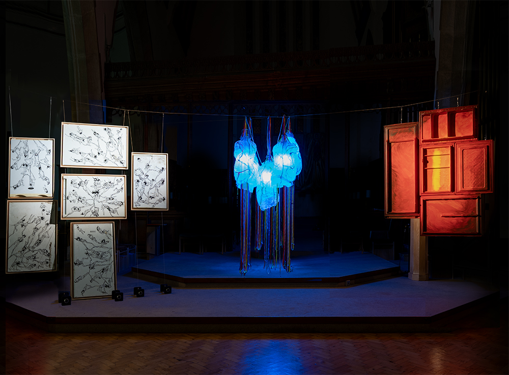 And when we were hanging the lamps to have the light on the fridge door only, at 7:15pm, 15minutes before the concert was about to start, everyone thought I was crazy. We could have just left the lights on at the church and everything would be lit and everyone would see everything. But I wouldn’t give up so my husband climbed the 5m ladder and hung the spot lights recommended by a theatre and gallery light engineer friend. And we turned off the lights. The concert was slightly delayed. But that made all the difference! The feeling that we wanted was there. People had tears in their eyes.