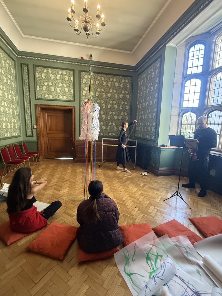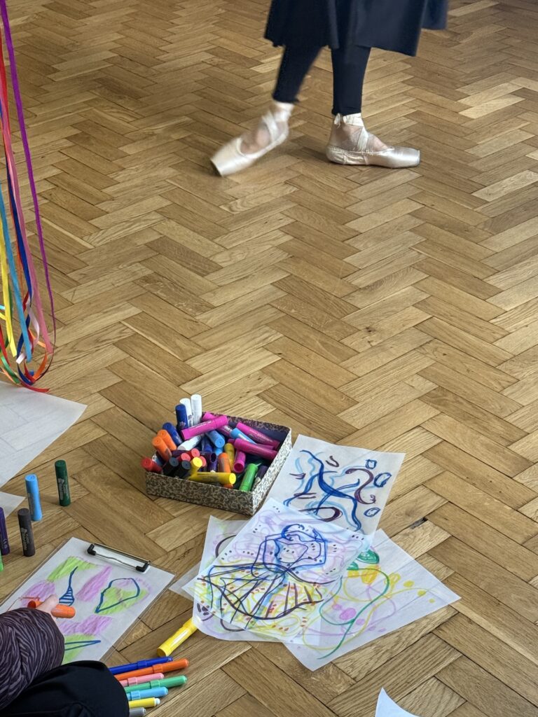 2nd day was even better with 6 people attending, this time more creative and really decisive when it came to drawing. I really loved everyone sitting on the pillows on the floor, surrounded by tracing paper and markers, asking me for more supplies, reacting to the performance with such a huge variety of drawing styles and really combining what they were seeing with what they felt when withnessing the performance. The most incredible conversation, which made me think: “this is the main reason I wanted to do this workshop” was one young woman’s reaction to this snippet from the Lara Turk’s – dancer’s monologue about postpartum ” My body didn’t feel like a dancers body, or look like a dancer’s body. I felt so many miles away from that identity. I didn’t know how I was going to get back, but I had to get back. I’m a dancer. I’m an actress. I need to emote, to embody. I crave the hyperfocus of a performance. The complete presence of that lived moment in live performance. Sometimes I wonder if my children will think my choice to keep dancing is selfish. I hope not. Mothers work, women have careers, my work means so much to me, I’m so proud of it. It’s governed nearly all of my life choices ot date. I hope I teach my children passion, dedication, sacrifice, focus. When people ask me: ‘Aren’t you worried about the time you’re missing out with them? They grow up so fast. Aren’t you worried about missing that?’ No one asks my husband that. As if that guilt should fall only on mothers.” After listening to this the lady said: “I don’t have children, but in China, my home country, so many women give up their careers to care for their children and their home, they later push their children so hard to fulfill their own dreams they gave up. I don’t think this is good. I think if I ever have children I would like to raise them watching me pursue my passion, my career. I think that owuld be better for them.” I have tears in my eyes even just writing this, I relate so much, I relate to Lara’s words, her passion, her “desperation” to keep pursuing, not just selfishly for ourselves, but as mothers, this almost feels like a responsibility, something our children must witness in order to thrive themselves as adults. I am so extremely grateful for this workshop experience, to Adam and Natasha, and to the entire Two Temple Place team. To my husband for playing the violin so beautifully and improvising so openly with Lara. To my mum and my brother who came especially from Poland to come and film it. And to all the wonderful women who came and experienced it and hopefully got something good out of it for themselves, maybe a feeling they’re not alone, that there are more of us creative mums out there, doing everything possible to combine mother-artist life.