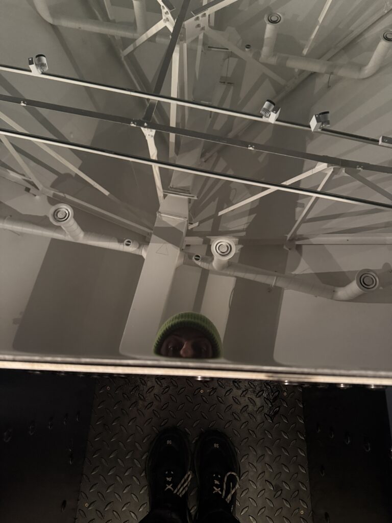 Originally created in 1987 and now considered one of Britain’s most iconic installations, 20:50 holds up a reflection of ourselves and the world we inhabit. In today’s climate crisis, this room, filled with recycled sump oil (the thick black engine oil drained from vehicle engines) becomes a meditation on consumption and environmental uncertainty. Its title refers to the grade of the oil itself, but the experience it creates is far from industrial, prompting us to consider the coexistence of material excess and ecological fragility in the reality we live in today.